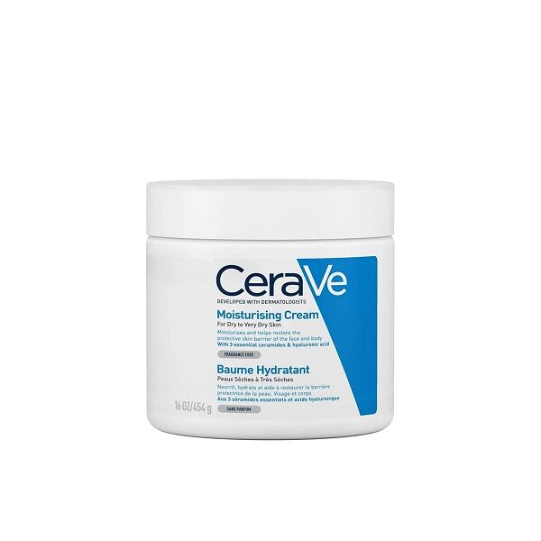CeraVe Moisturising Cream 454 Gm for Dry Skin with Hyaluronic Acid is a rich cream designed for the face and body to ensure all-day
